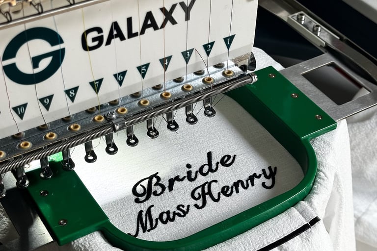 Les broderies Brodalex sont réalisées sur une machine de broderie industrielle Galaxy à 12 aiguilles.